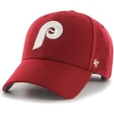 Cappellino rosso con visiera curva regolabile con logo classico dei Philadelphia Phillies MLB MVP Cooperstown di 47 Brand