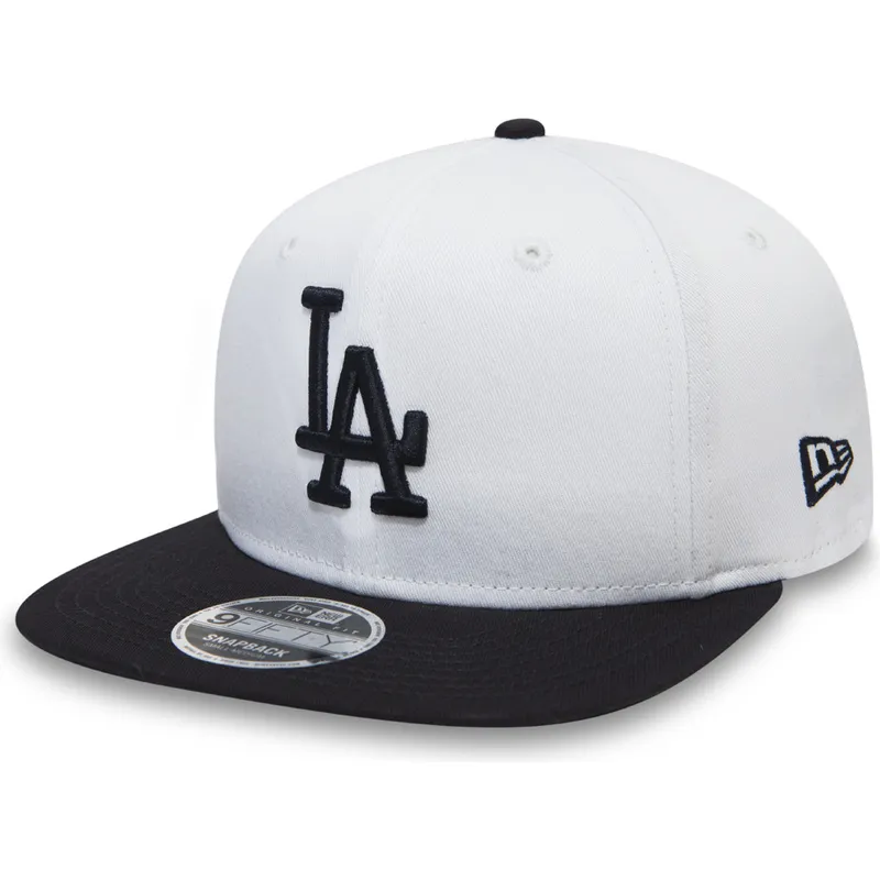 Cappellino piatto bianco snapback per bambino con visiera nera 9FIFTY Contrast Crown dei Los Angeles Dodgers MLB di New Era.