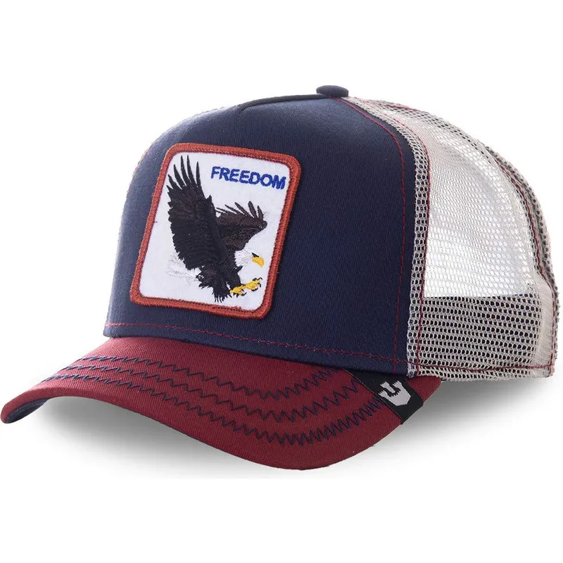 Il cappello da camionista Goorin Bros. Let It Ring Navy Eagle di Goorin Bros. è semplicemente sbalorditivo. La toppa ricamata di una maestosa aquila in volo è una vera opera d'arte. La combinazione dei colori blu navy, bordeaux e bianco è elegante e sobria, rendendo questo berretto perfetto per ogni occasione. La qualità del ricamo è impeccabile, garantendo che questo berretto duri a lungo.