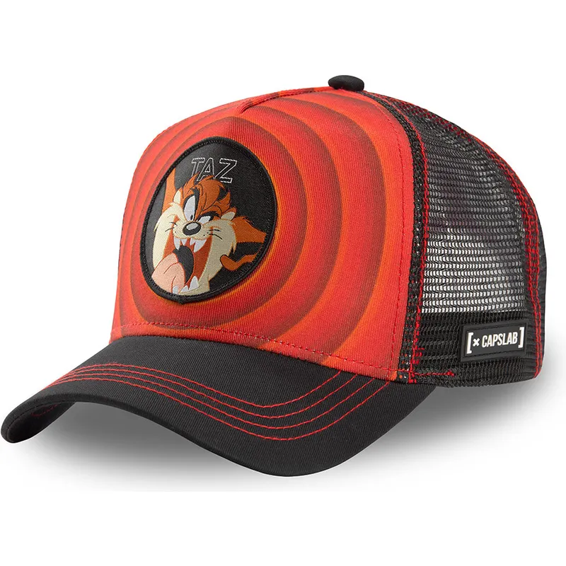cappellino-trucker-rosso-e-nero-tazmania-devil-bullseye-color-rings-loo-taz1-looney-tunes-di-capslab
