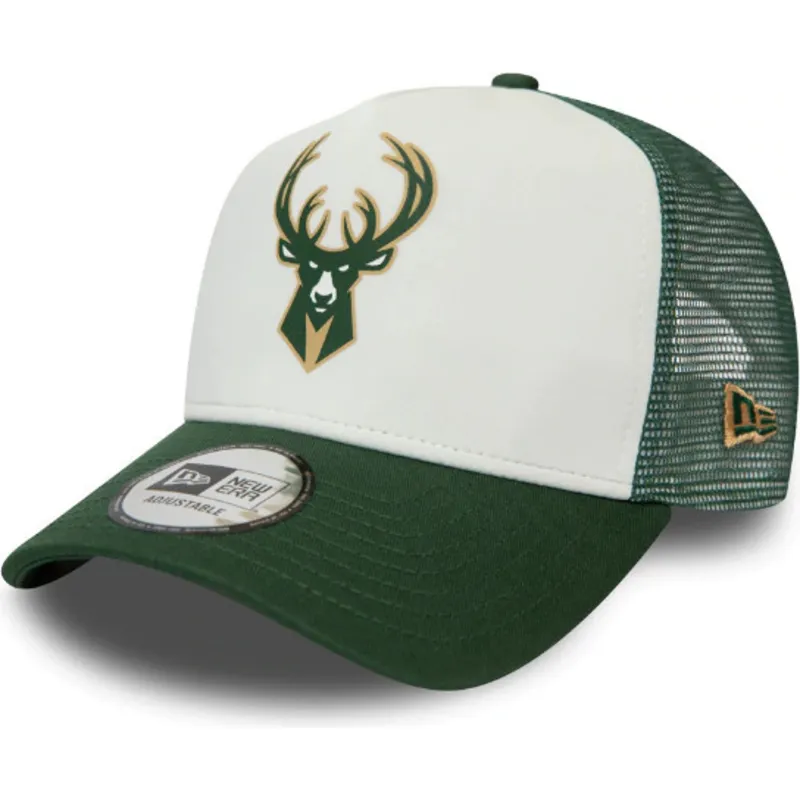 Berretto trucker bianco e verde Team Colour Block A Frame dei Milwaukee Bucks NBA di New Era