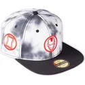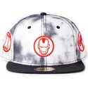 Berretto piatto bianco e nero snapback Iron Man Tye Dye Badge Marvel Comics di Difuzed