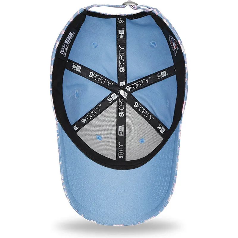 Cappellino curvo blu e rosa regolabile 9FORTY Floral dei New York Yankees MLB di New Era