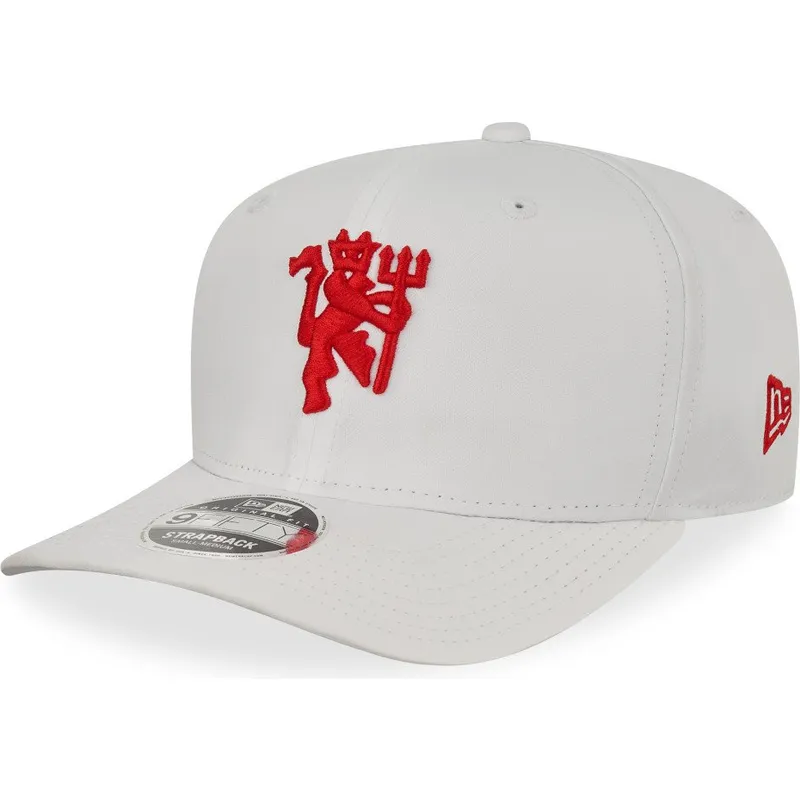 Cappello bianco regolabile con visiera curva e logo rosso 9FIFTY del Manchester United Football Club Premier League di New Era