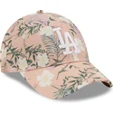 Cappellino rosa con visiera curva regolabile 9FORTY Floral dei Los Angeles Dodgers MLB di New Era