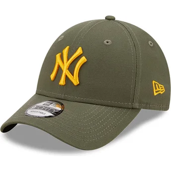 Cappellino curvo verde regolabile con logo giallo 9FORTY League Essential dei New York Yankees MLB di New Era